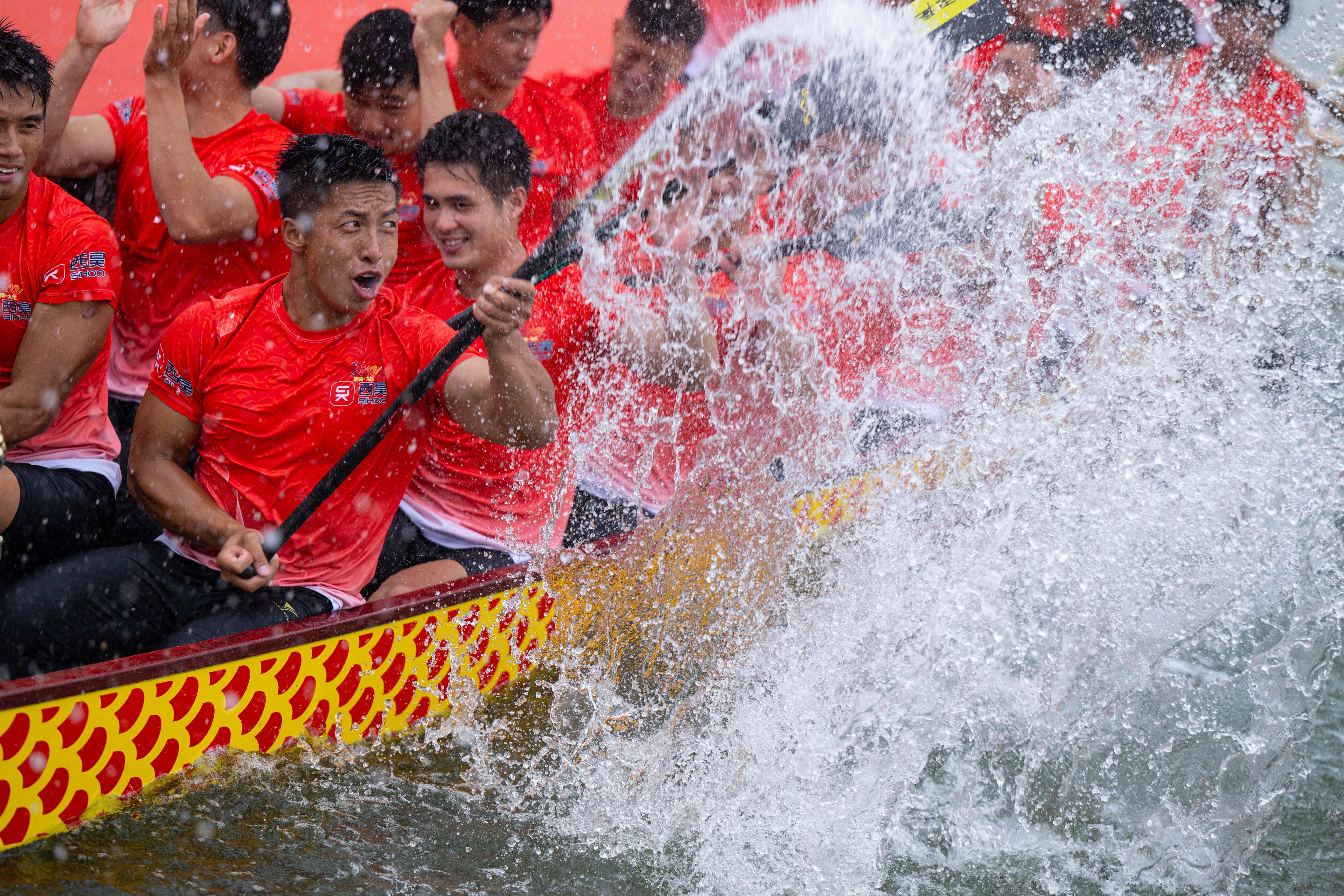 在香港仔海滨公园举行的龙舟竞渡大赛中,参赛选手奋楫争先(2023年6月22日摄)。中国功夫享誉世界,在粤港澳大湾区,南派功夫发扬光大。一句南拳北腿道出南派功夫的精髓,咏春拳短桥窄马攻守兼备,洪拳刚劲有力手法多样,蔡李佛拳刚柔相济灵活多变……从大湾区出发,南派功夫走向世界,展示出中华文化的坚韧不拔、锐意进取、兼容并包。