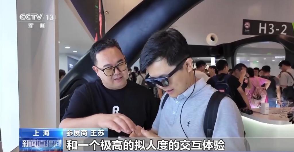 参展商 王苏:这款眼镜接入了MinMax语音模型,我们提供了一个极低的延时和极高的拟人度交互体验。能让用户在跟眼镜交流的过程中有一个像真人的反馈。