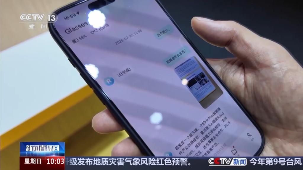 记者看到,跟智能眼镜连接的手机上很快就出现了按照语音指令拍摄的图片,而且还识别出记者眼前的物体是展台,以及展台上的文字内容。